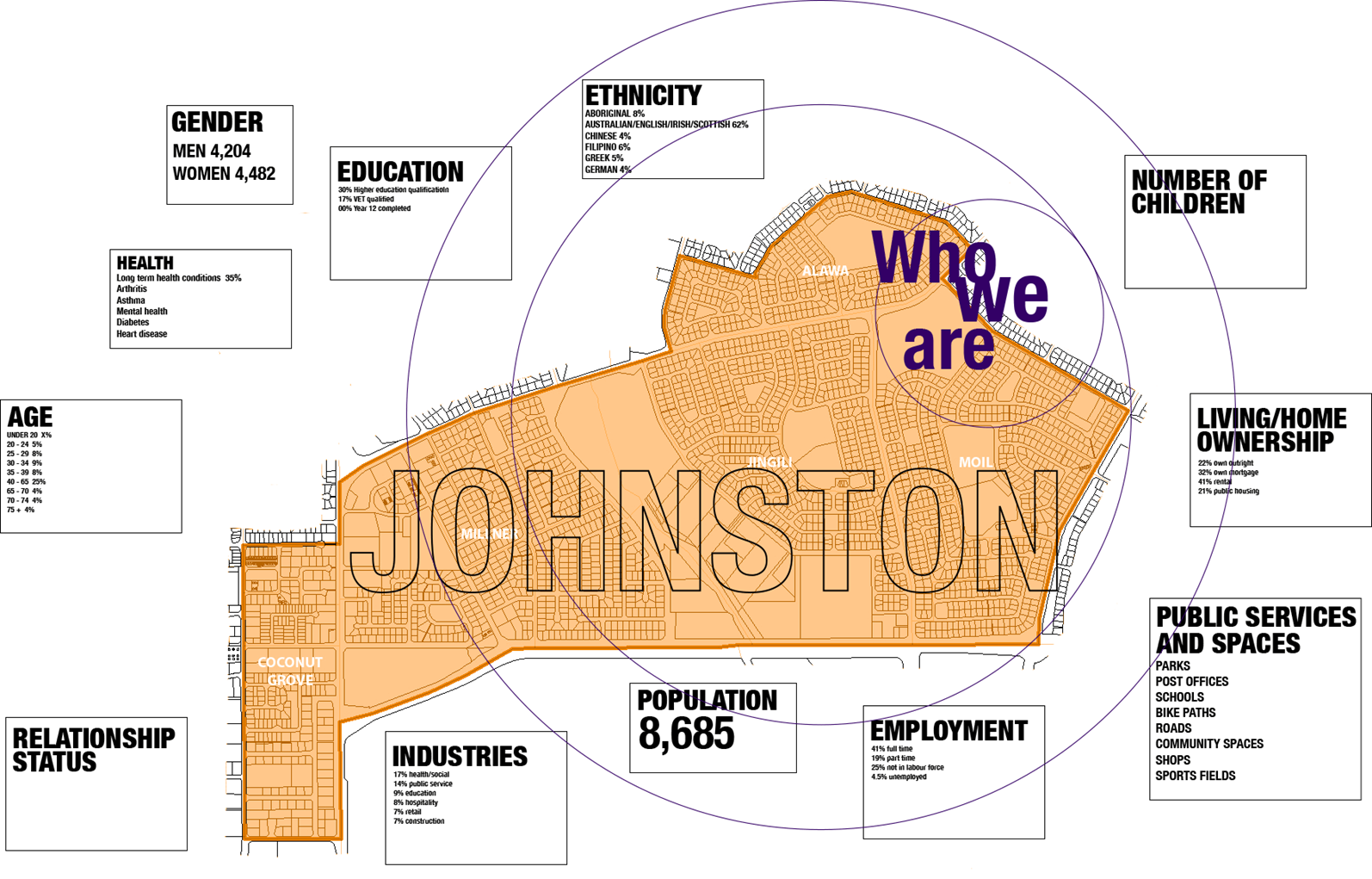 See more Johnston QuickStats from the 2021 Census - This is a summary from Australian Bureau of Statistics data, which includes demographics and key characteristics of the people living in the area, their families and their dwellings.